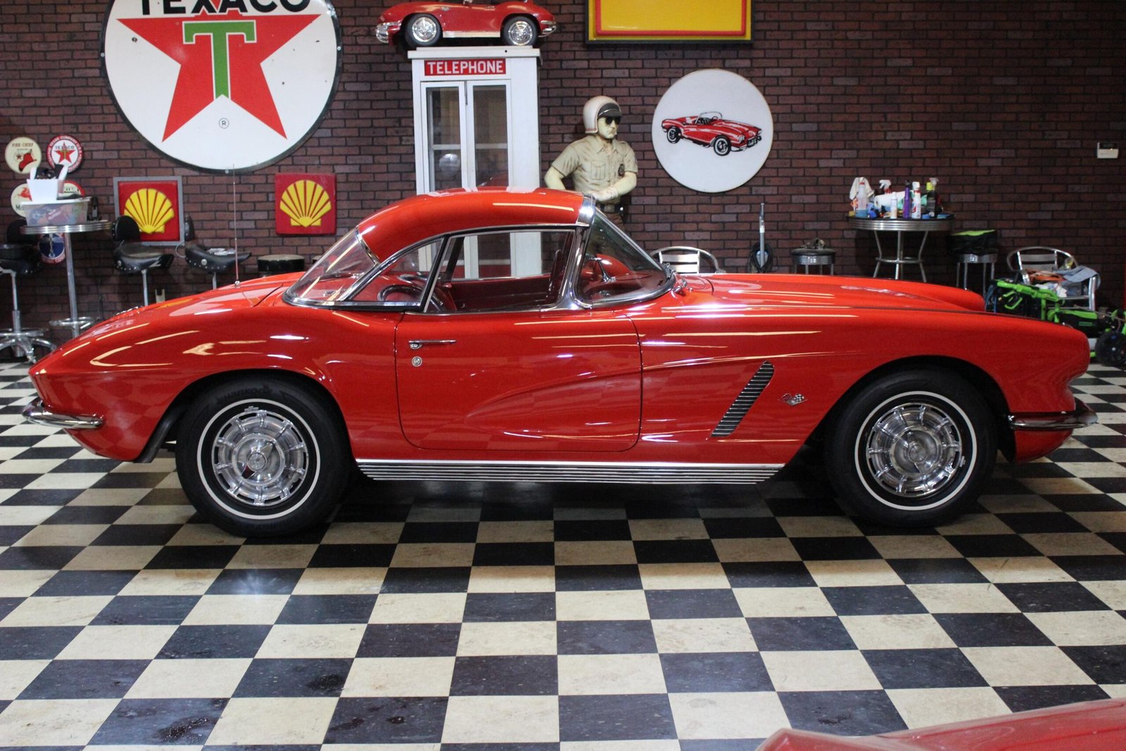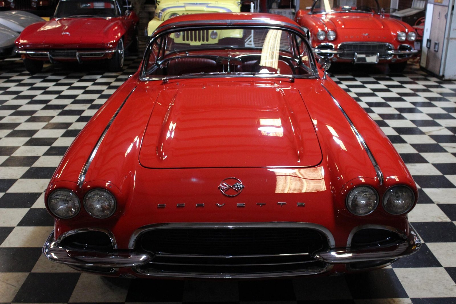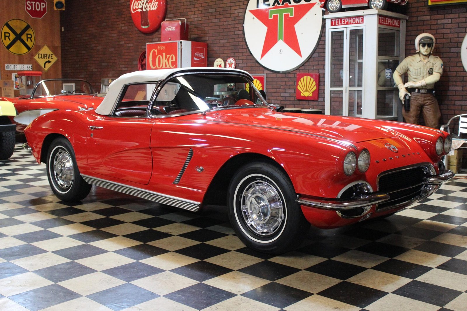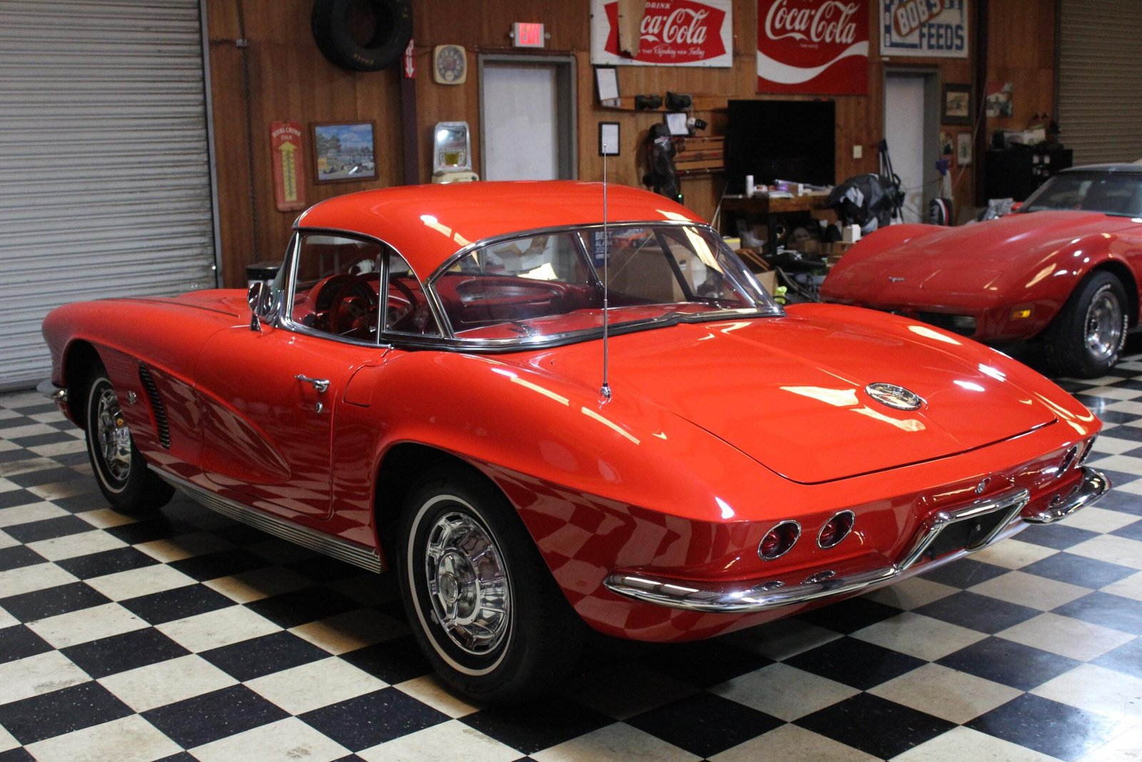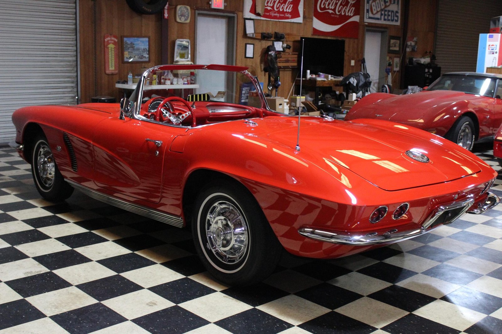 Up for sale is a 1962 Chevrolet Corvette Convertible 327/340hp with CE block "870". This beautiful Corvette is dressed in nice Red paint and Red interior. This is a 4 speed car with posi rear end, AM-FM radio, interior light , heater and auxiliary hard top. This car has been nicely updated with power steering, power brakes and front disc brakes. This car has very nice paint, chrome and interior. Runs and drives great with very solid frame and under carriage. Ready to enjoy just in time for top down weather.