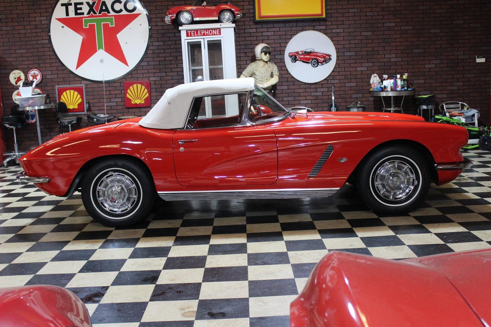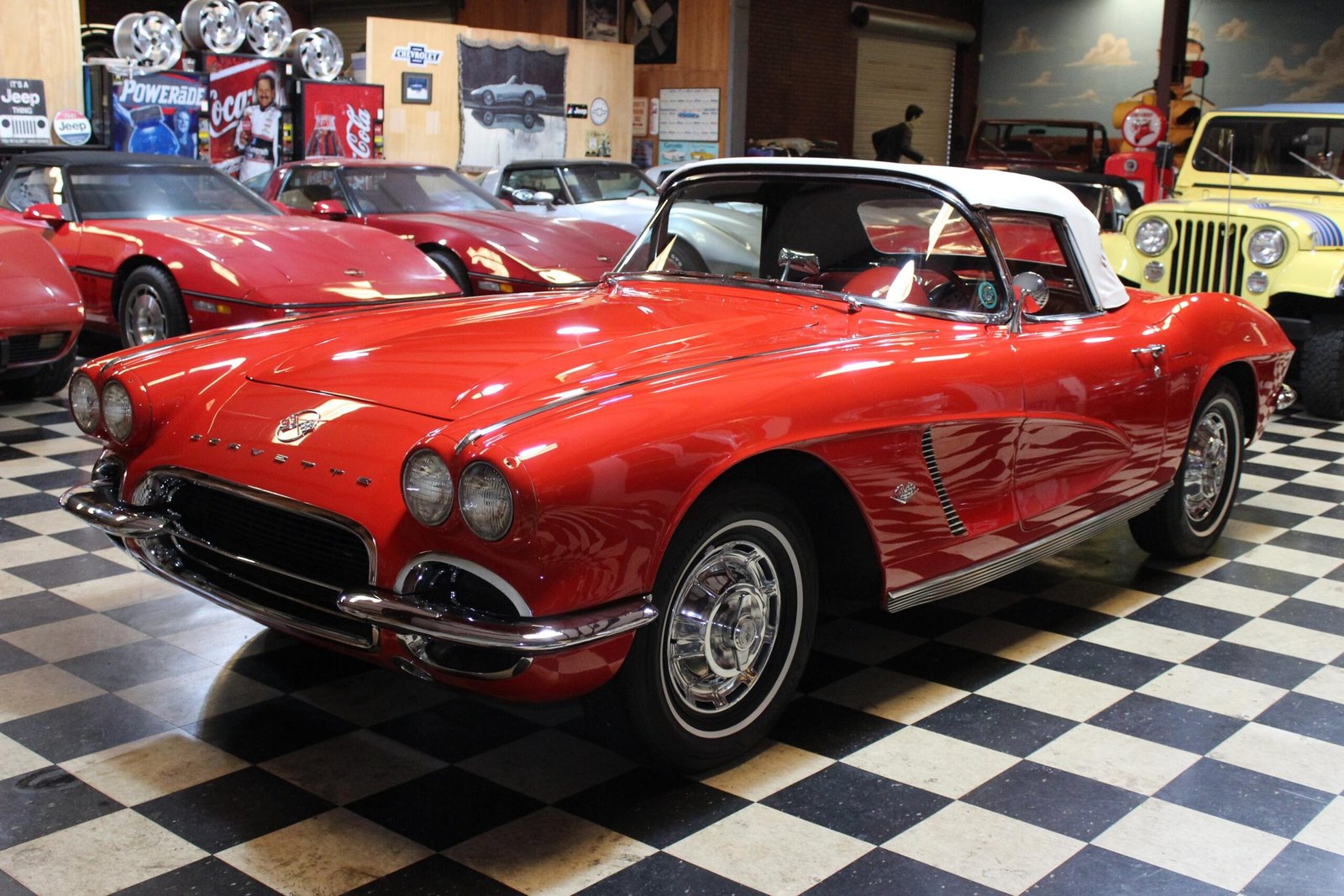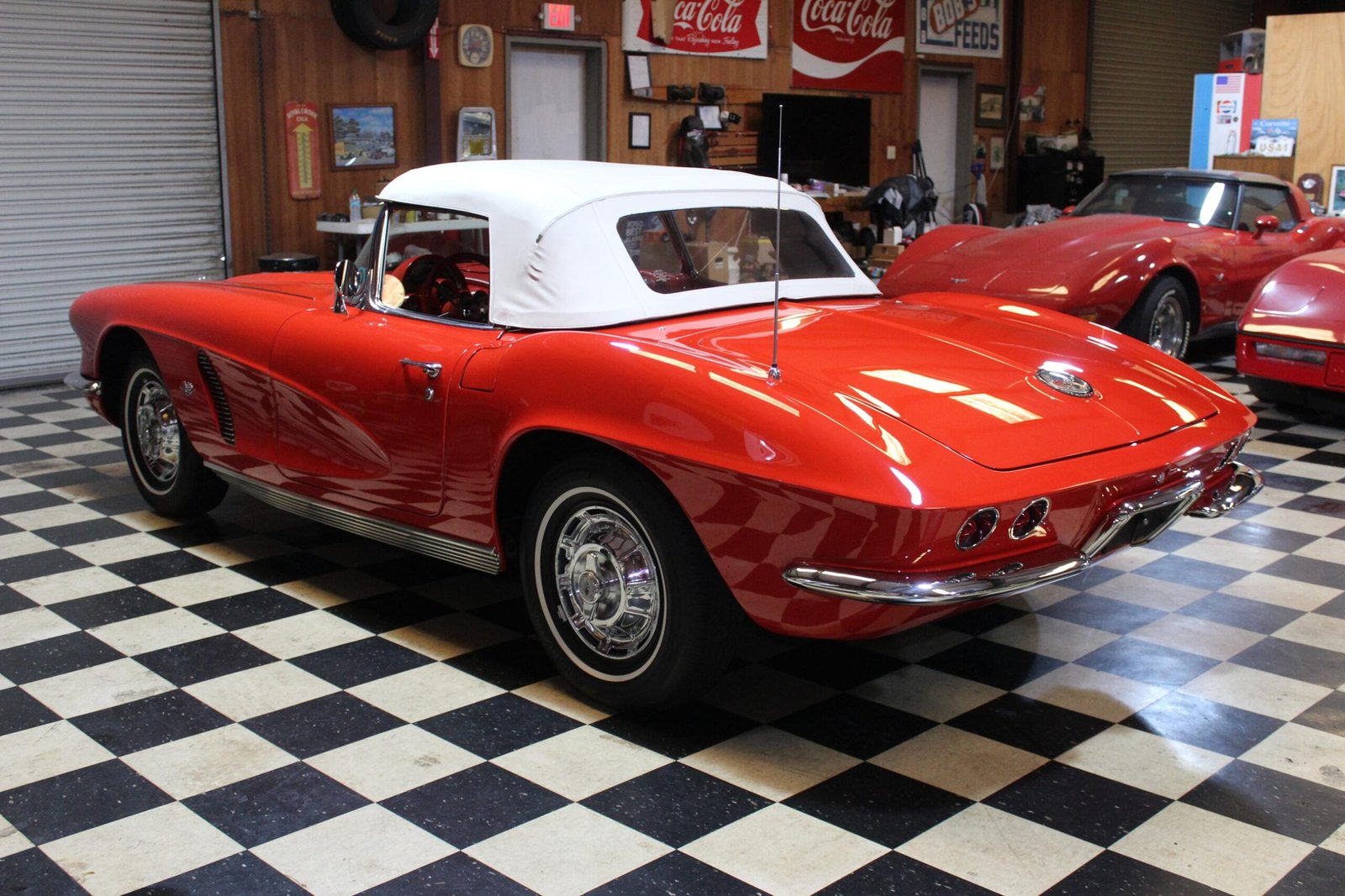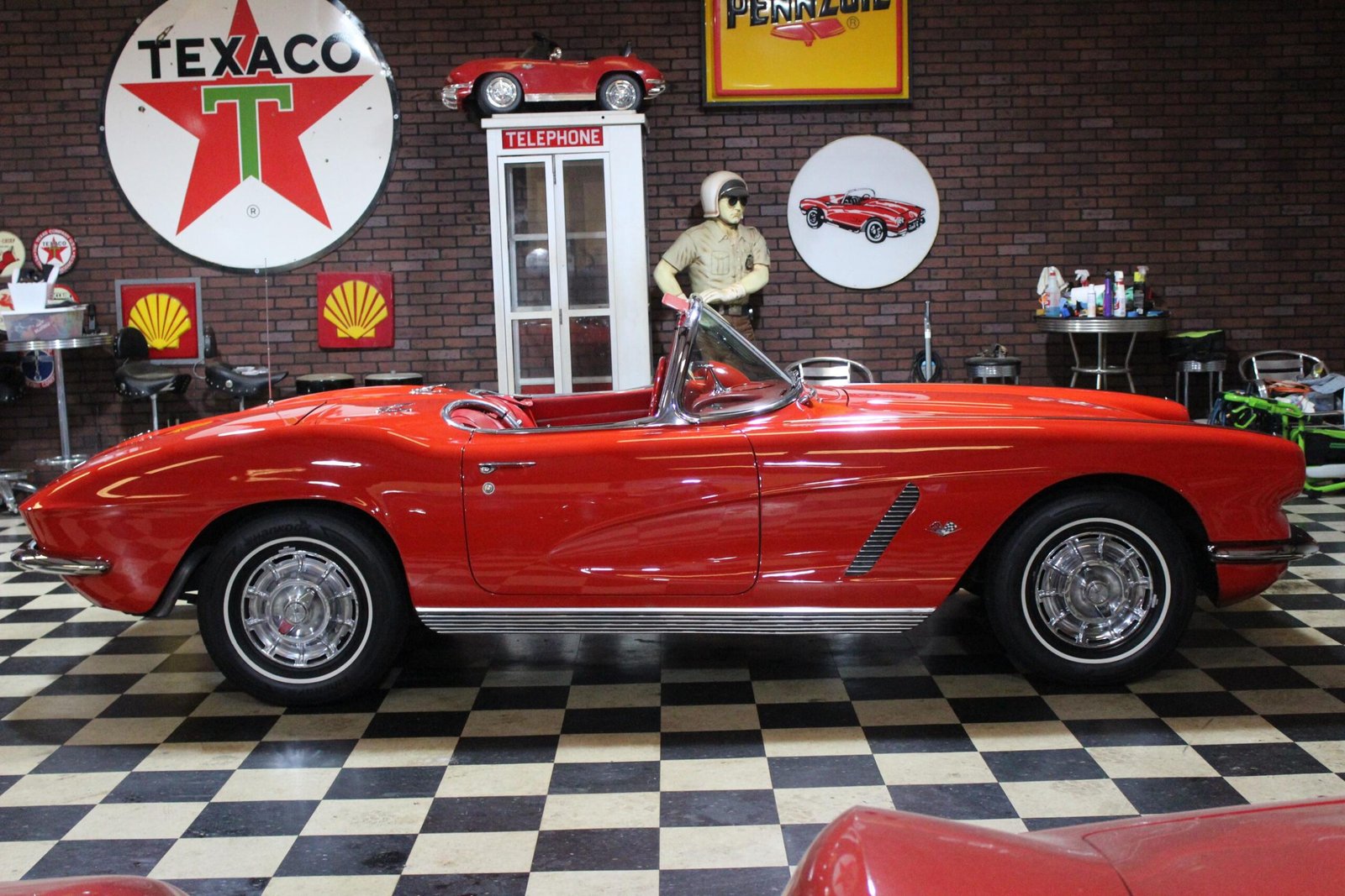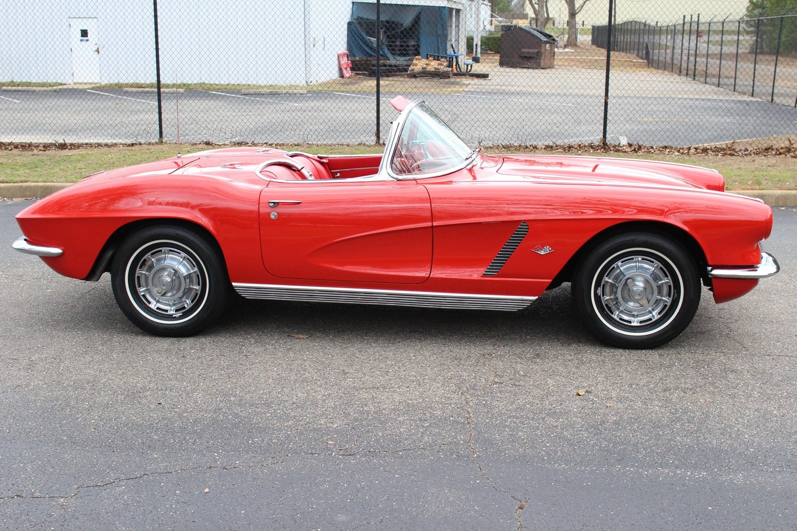 Up for sale is a 1962 Chevrolet Corvette Convertible 327/340hp with CE block "870". This beautiful Corvette is dressed in nice Red paint and Red interior. This is a 4 speed car with posi rear end, AM-FM radio, interior light , heater and auxiliary hard top. This car has been nicely updated with power steering, power brakes and front disc brakes. This car has very nice paint, chrome and interior. Runs and drives great with very solid frame and under carriage. Ready to enjoy just in time for top down weather.