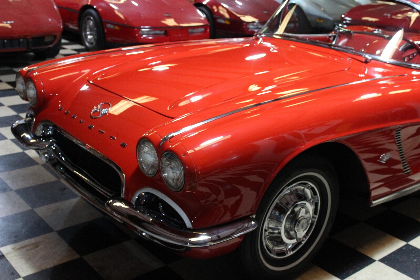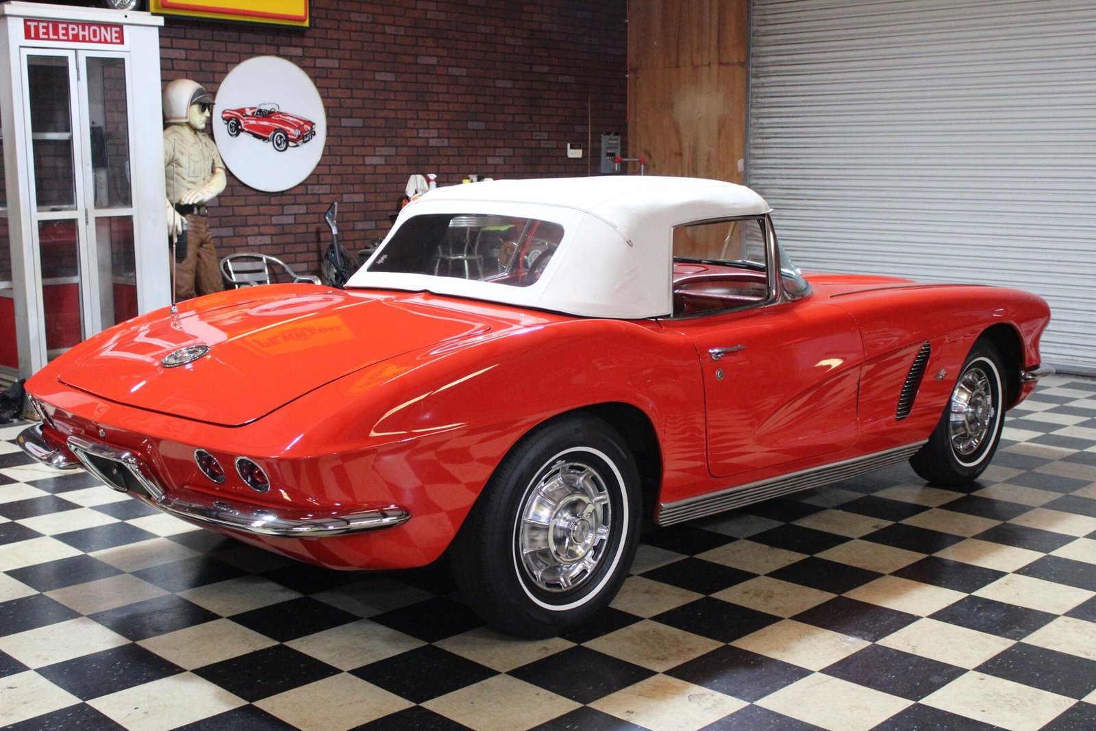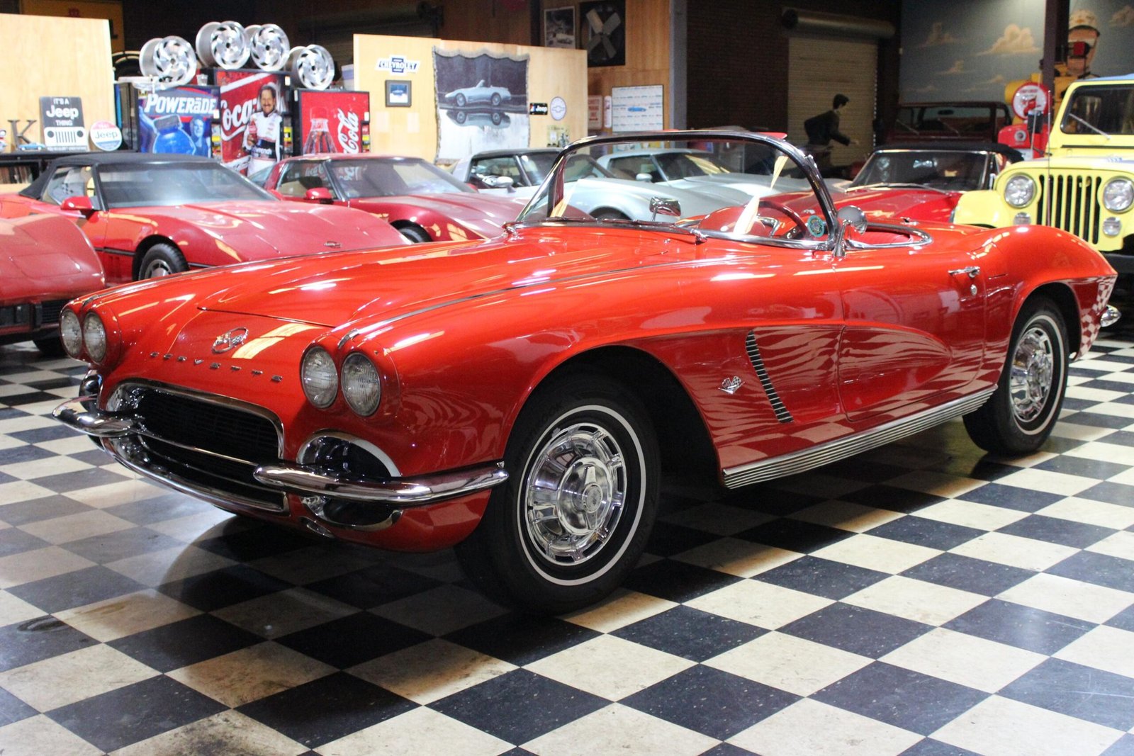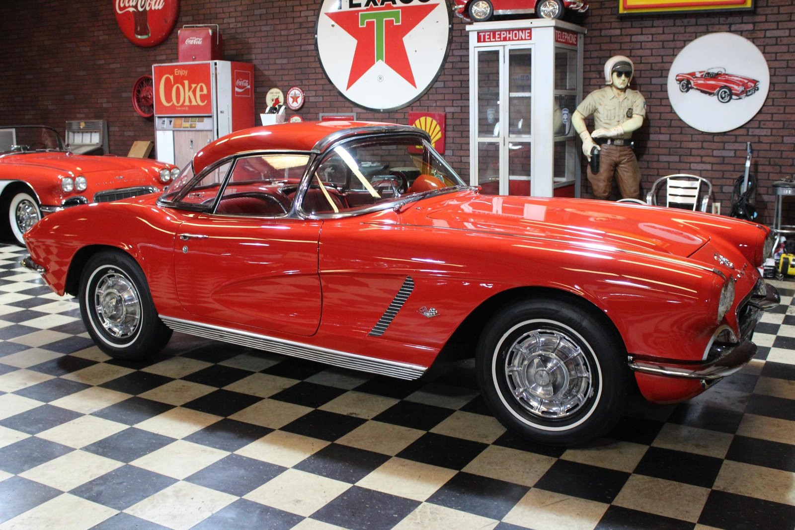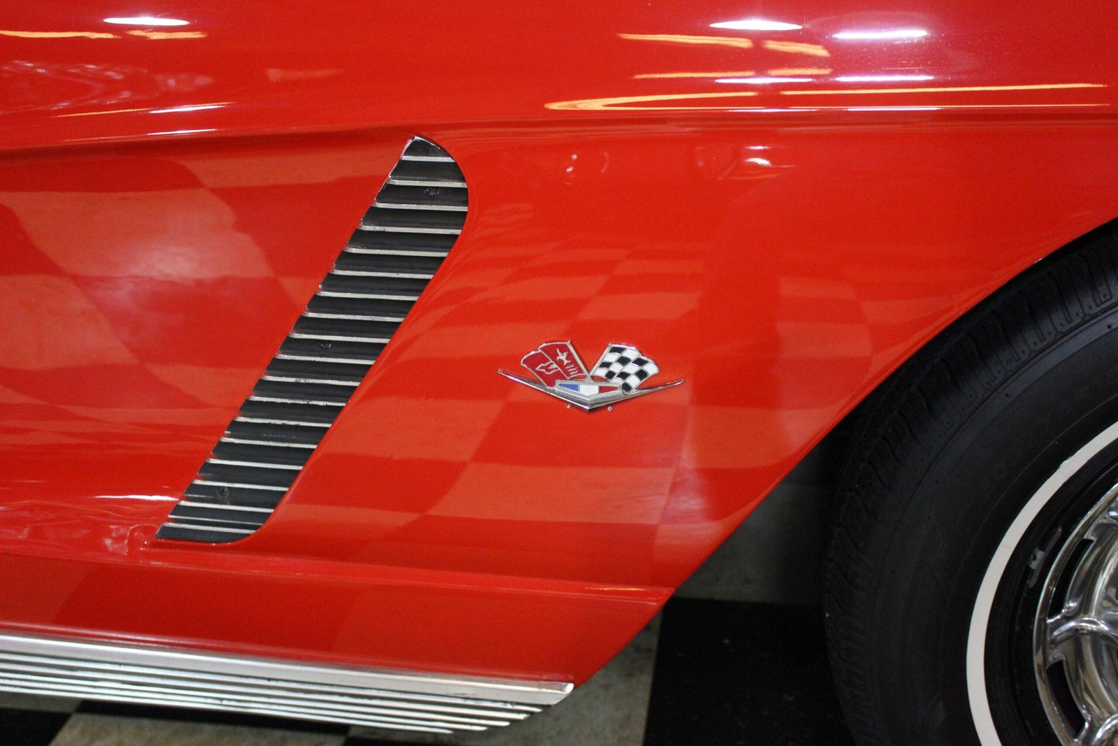 Up for sale is a 1962 Chevrolet Corvette Convertible 327/340hp with CE block "870". This beautiful Corvette is dressed in nice Red paint and Red interior. This is a 4 speed car with posi rear end, AM-FM radio, interior light , heater and auxiliary hard top. This car has been nicely updated with power steering, power brakes and front disc brakes. This car has very nice paint, chrome and interior. Runs and drives great with very solid frame and under carriage. Ready to enjoy just in time for top down weather.