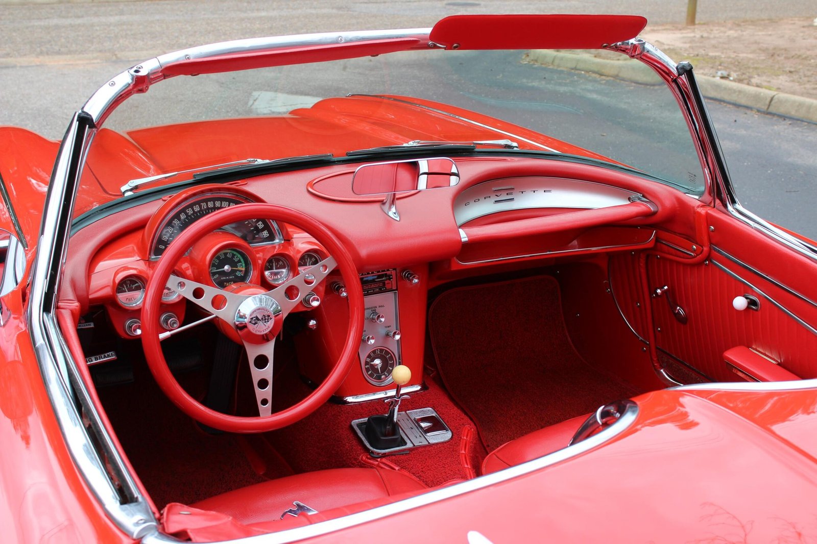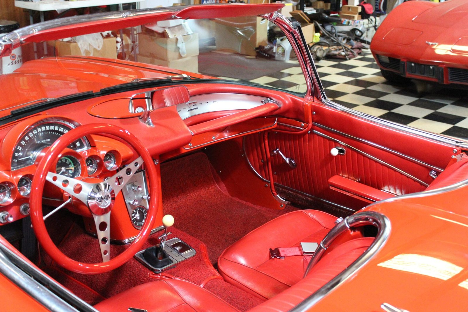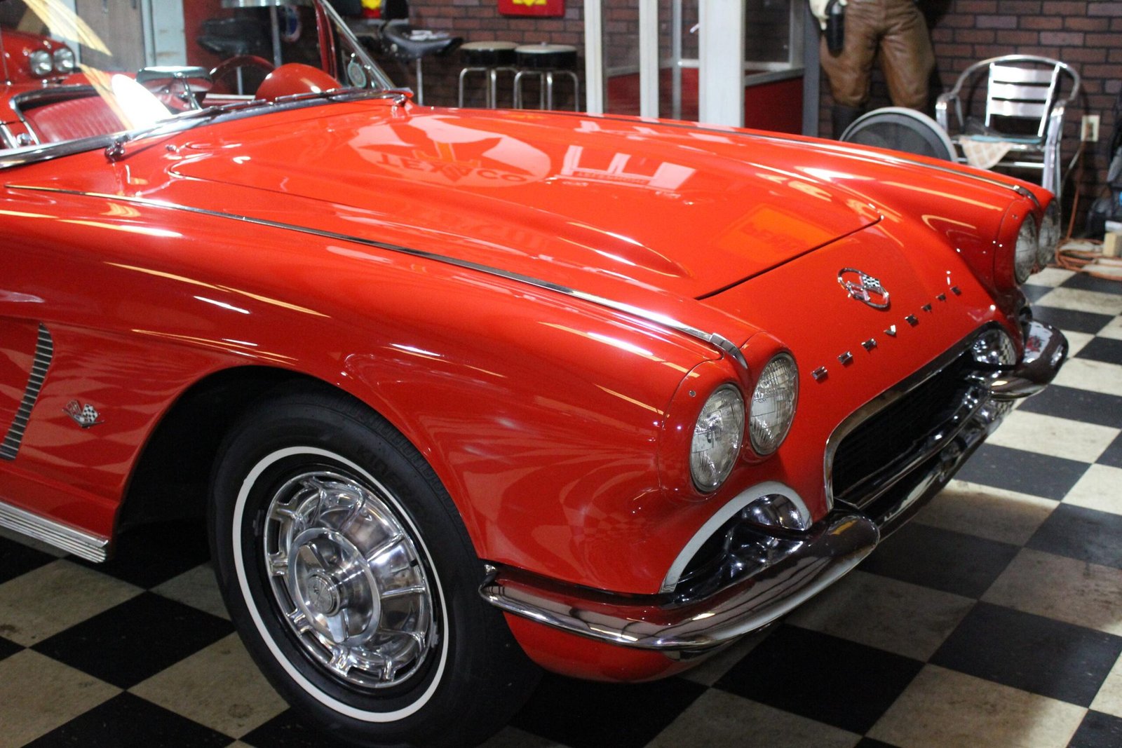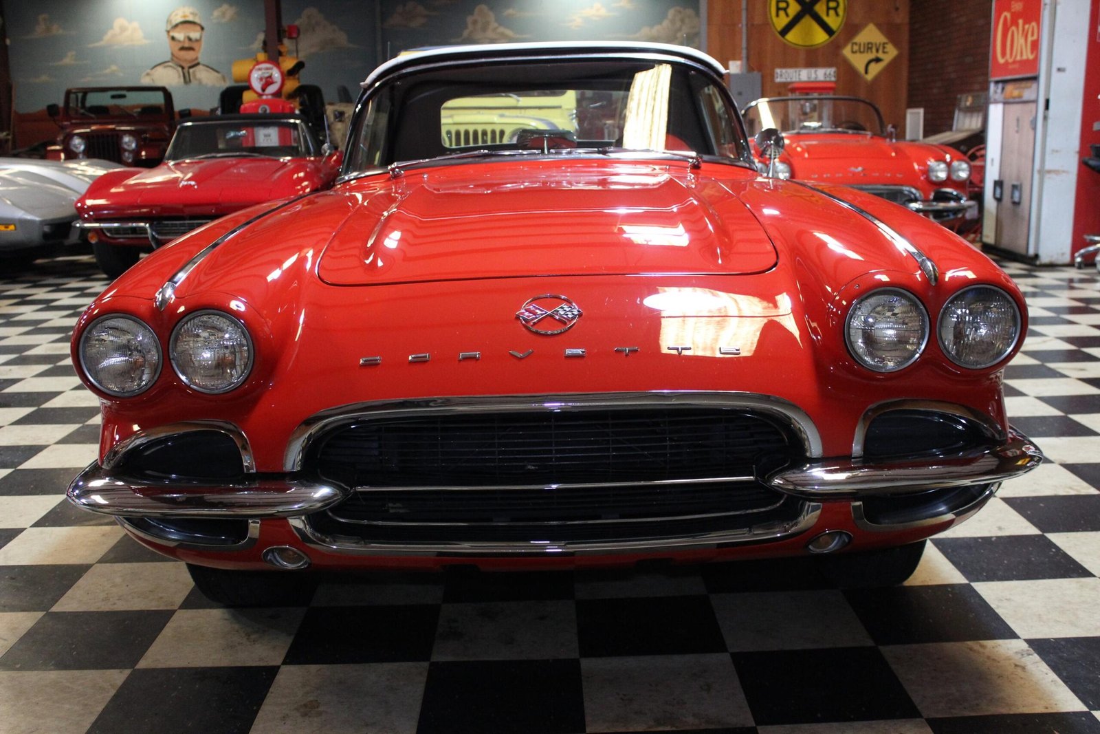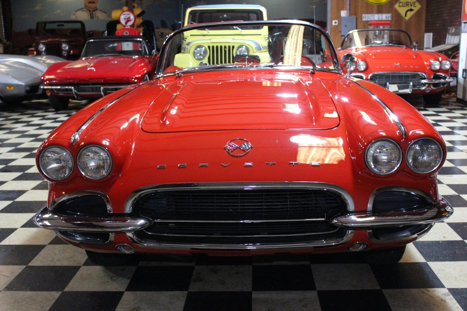 Up for sale is a 1962 Chevrolet Corvette Convertible 327/340hp with CE block "870". This beautiful Corvette is dressed in nice Red paint and Red interior. This is a 4 speed car with posi rear end, AM-FM radio, interior light , heater and auxiliary hard top. This car has been nicely updated with power steering, power brakes and front disc brakes. This car has very nice paint, chrome and interior. Runs and drives great with very solid frame and under carriage. Ready to enjoy just in time for top down weather.