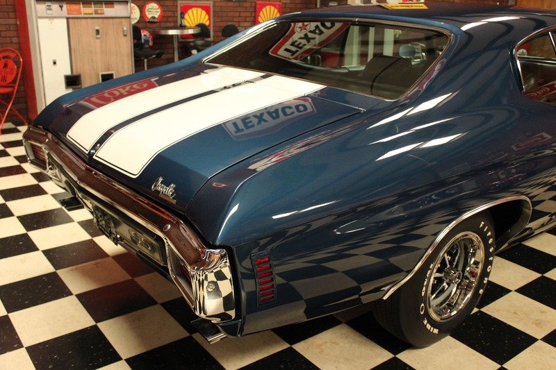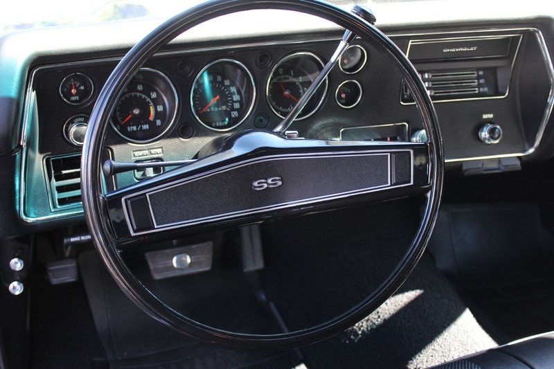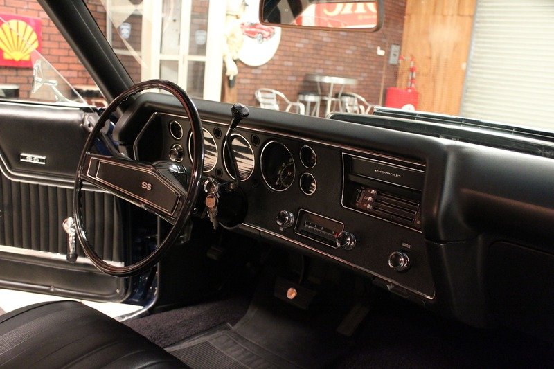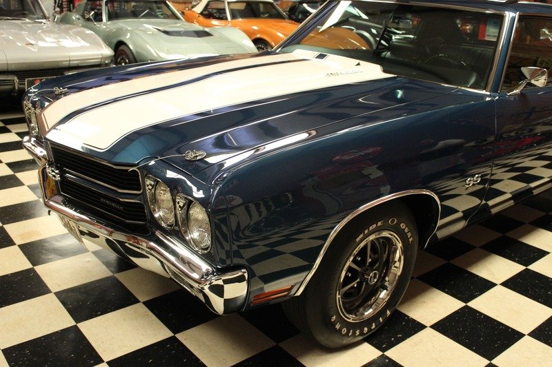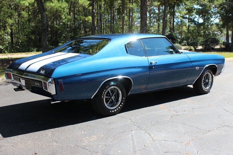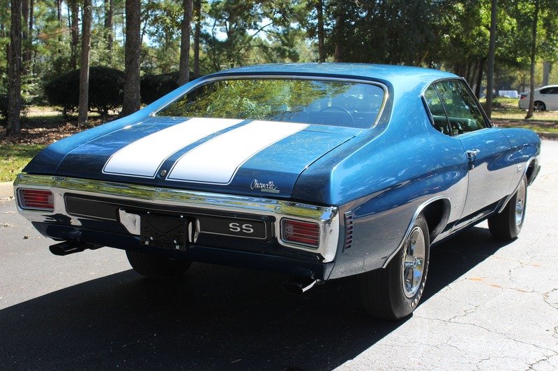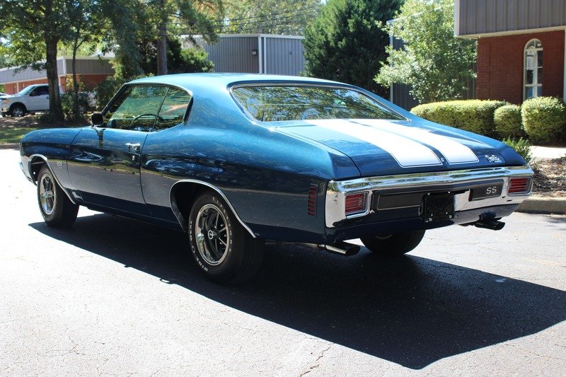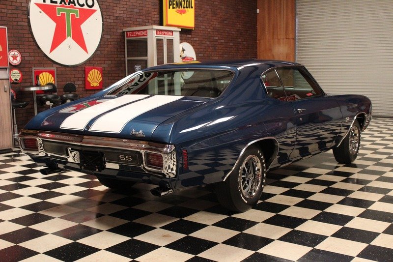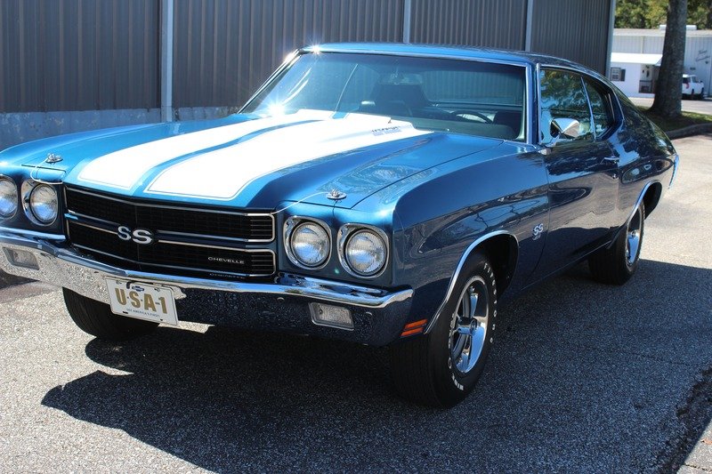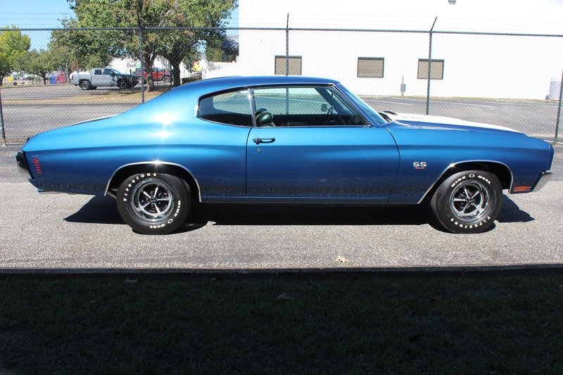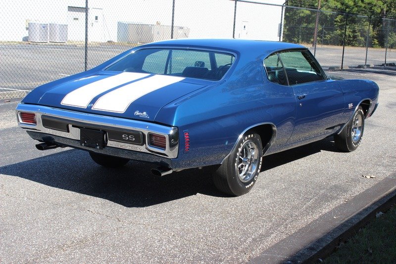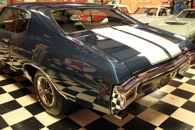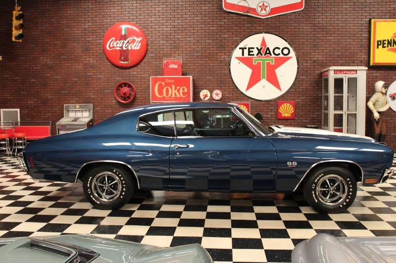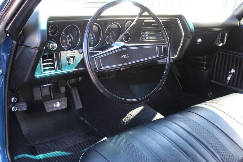 Up for sale is a 1970 Chevrolet Chevelle SS 454 LS6 dressed in fathom blue over Black vinyl. This Chevelle was sold new at Reedman Chevrolet of Langhorne, PA and has only 69k miles with only 2 owners. This Chevelle was optioned with highest horsepower offering at the time, the LS6 454/450hp big block engine. This is a mathing numbers car and is backed with an original build sheets. other specs on this car include, Z15 SS package, hood and deck stripes, F41 performance suspension, 4.10 gear ratio, G80 posi traction, Power brakes, power disc front, 3 speed automatic transmission, power steering, cowl induction hood, AM radio and F70x14 white letter tires. This Chevelle was purchased from the original owner and recieved a high-level nut and bolt proffesional rotessorie restoration. This Car was put back exactly the way it left the factory retaining its original drive train. This Chevelle came out of the renowned Jeff Mauk collection. Jeff Mauk is known for purchasing well documented Chevelle and Camaro examples and restoring them to better than new condition. The attention to detail on this car is staggering, from the show quality paint to the underside that is just as clean as the top side. The column shift auto coupled with the bench seat is said to be the light configuration and add in 4.10 gears and posi trac and you have yourself a factory built drag car. The condition and lineage can not be stressed enough on this car, this is the pinneacle of the muscle car era. This is a high end collectible that is read to go.