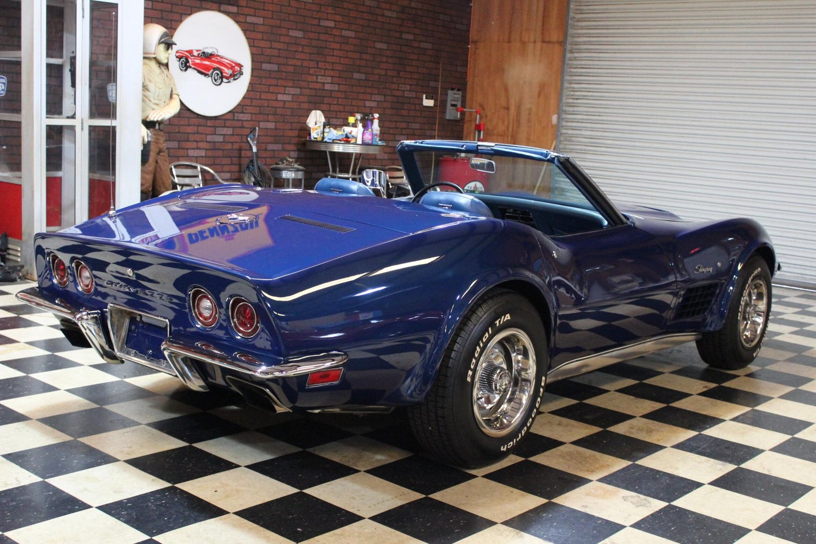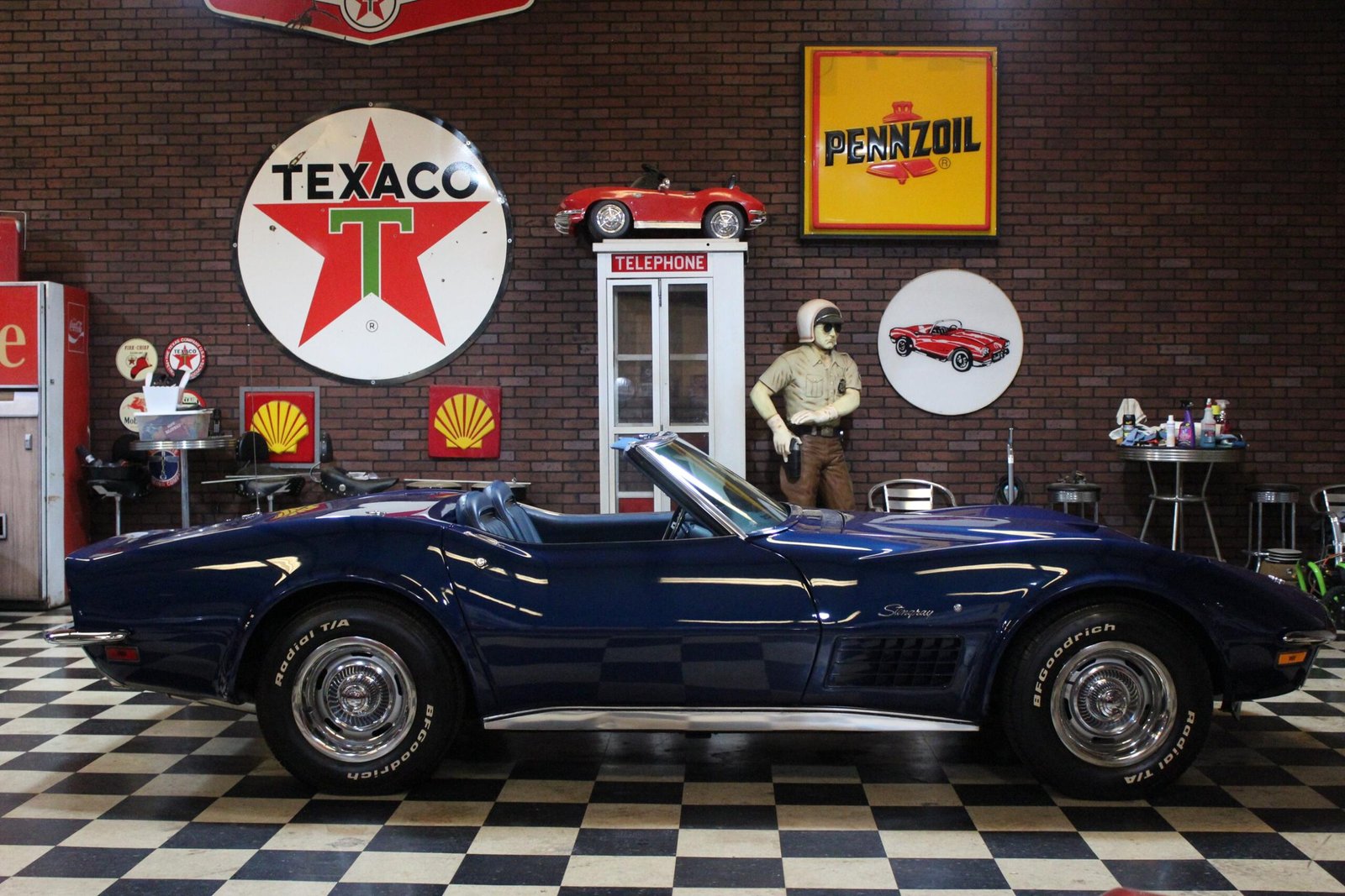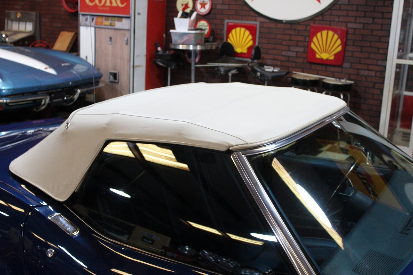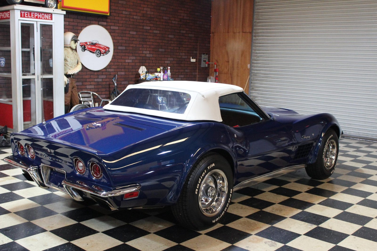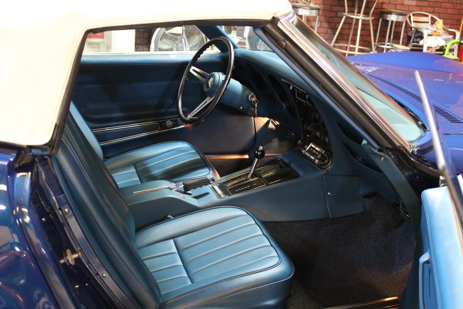 Up for sale is a 1972 Chevrolet Corvette Convertible. This Corvette is dressed in beautiful Blue paint over blue interior and white soft top. This is a matching number L48 350 V8 automatic transmission car that is nicely optioned with power steering, power brakes, AM/FM, tilt- telescoping. This car has very nice shiny paint with new interior, nice driver quality car. This car has a great look with seldom seen color combo that makes it really stand out. This is a great car to let the top down on nice days and just cruise, easy to drive. Ready to enjoy.