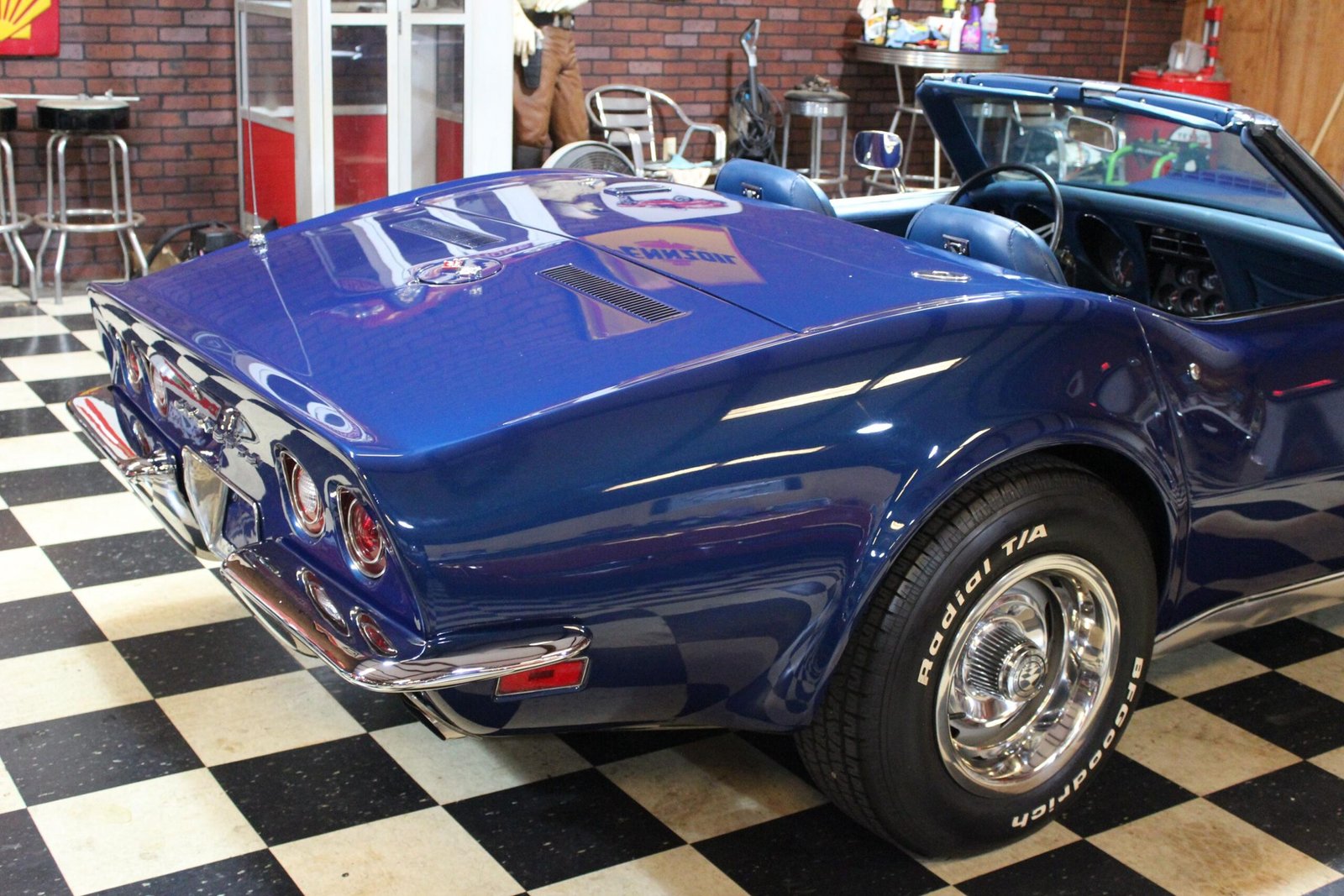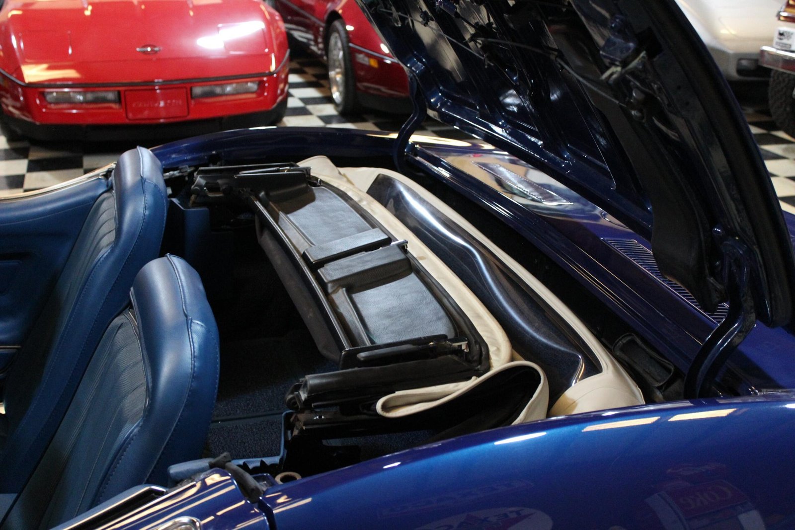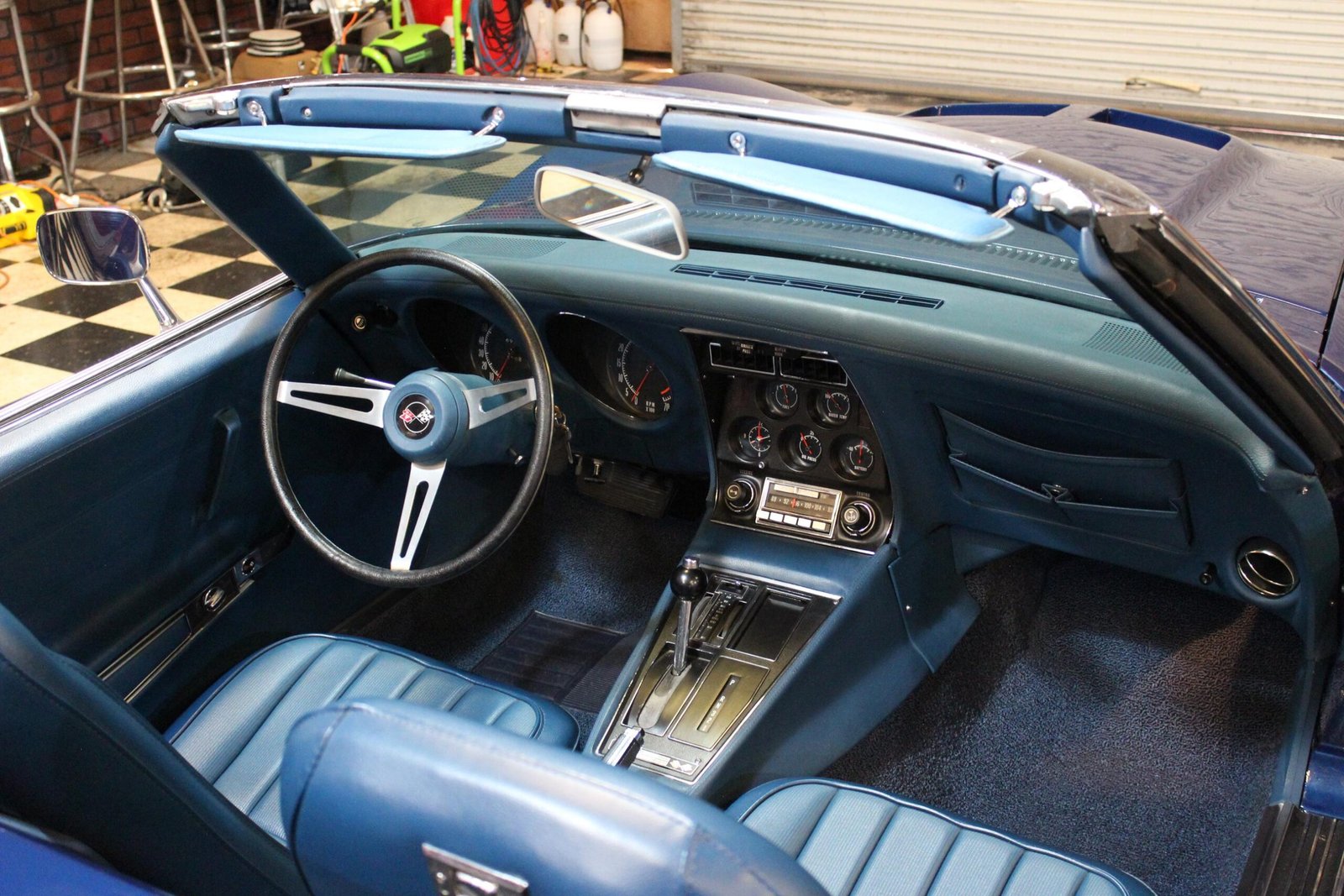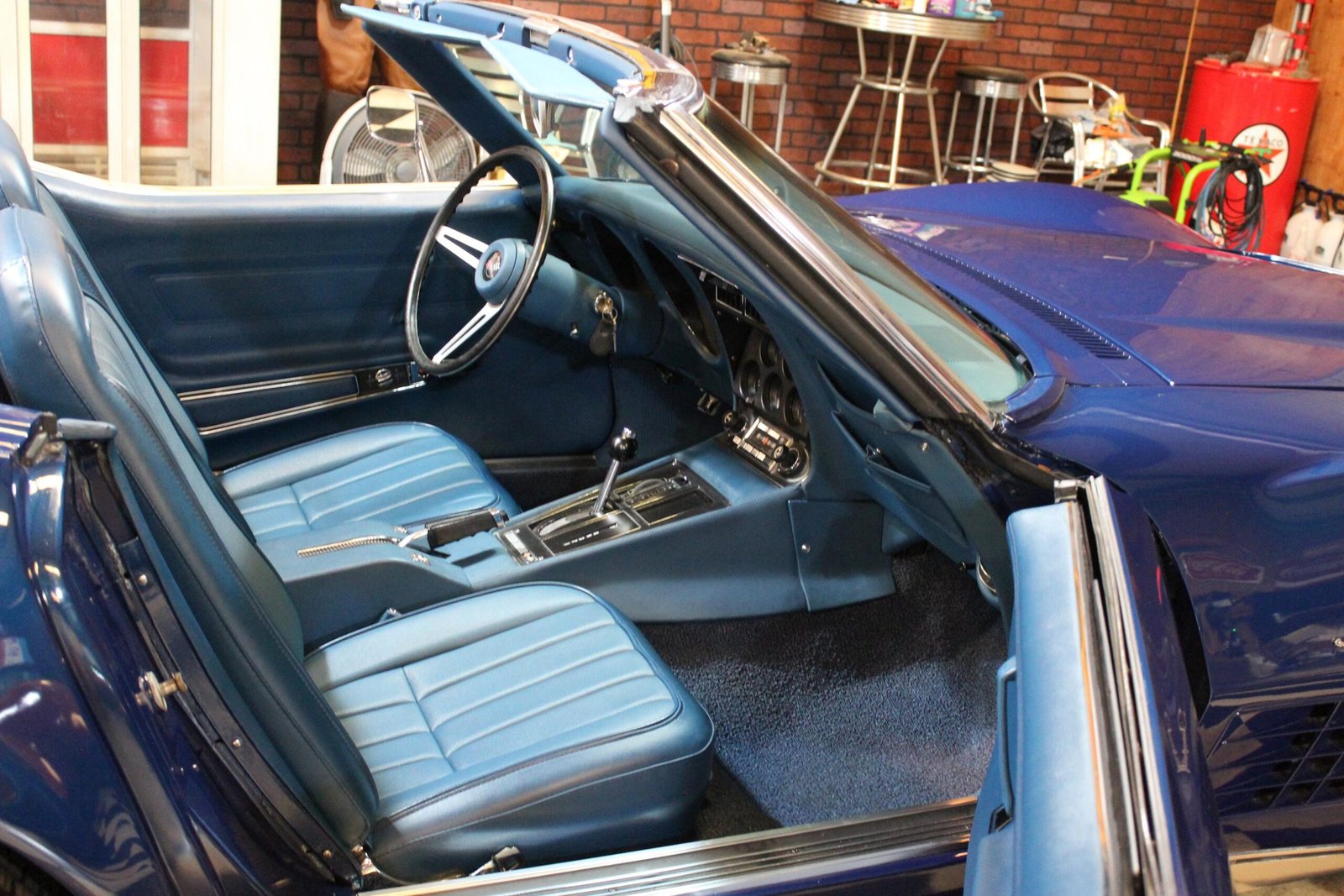 Up for sale is a 1972 Chevrolet Corvette Convertible. This Corvette is dressed in beautiful Blue paint over blue interior and white soft top. This is a matching number L48 350 V8 automatic transmission car that is nicely optioned with power steering, power brakes, AM/FM, tilt- telescoping. This car has very nice shiny paint with new interior, nice driver quality car. This car has a great look with seldom seen color combo that makes it really stand out. This is a great car to let the top down on nice days and just cruise, easy to drive. Ready to enjoy.