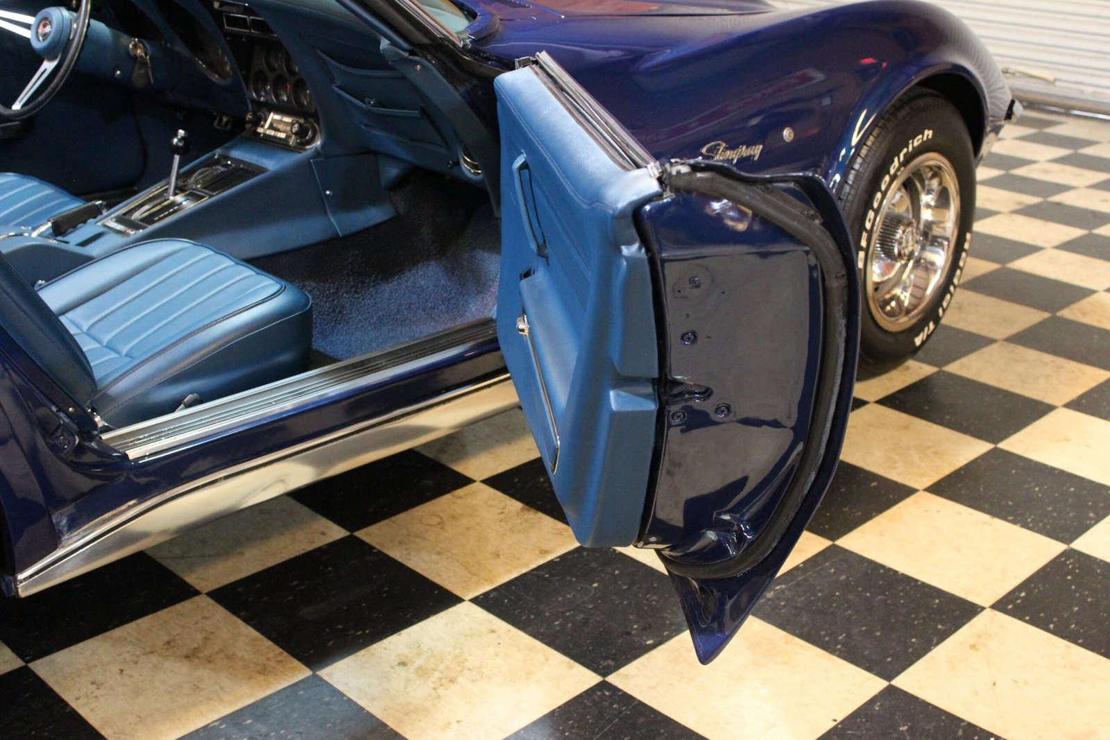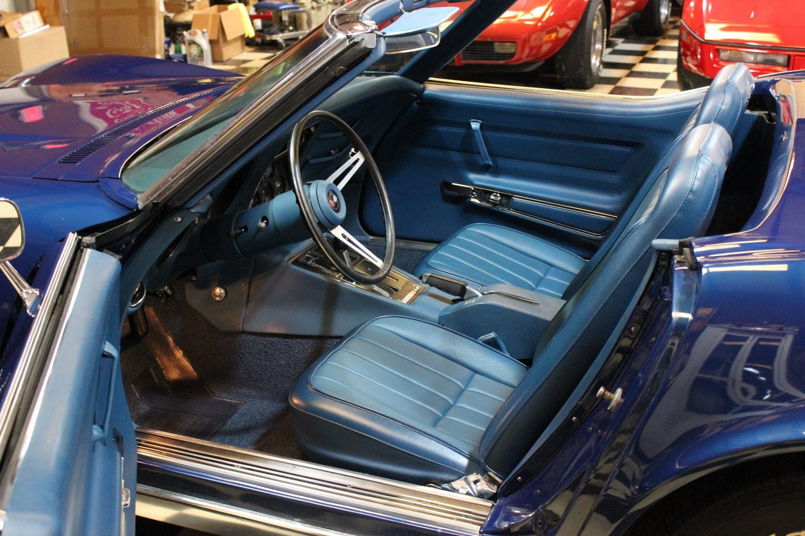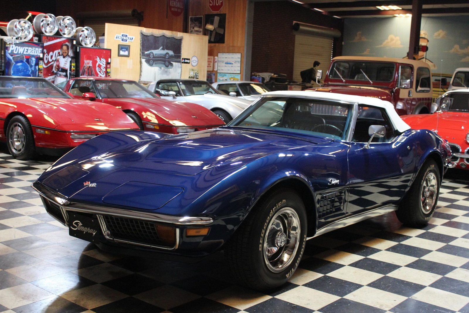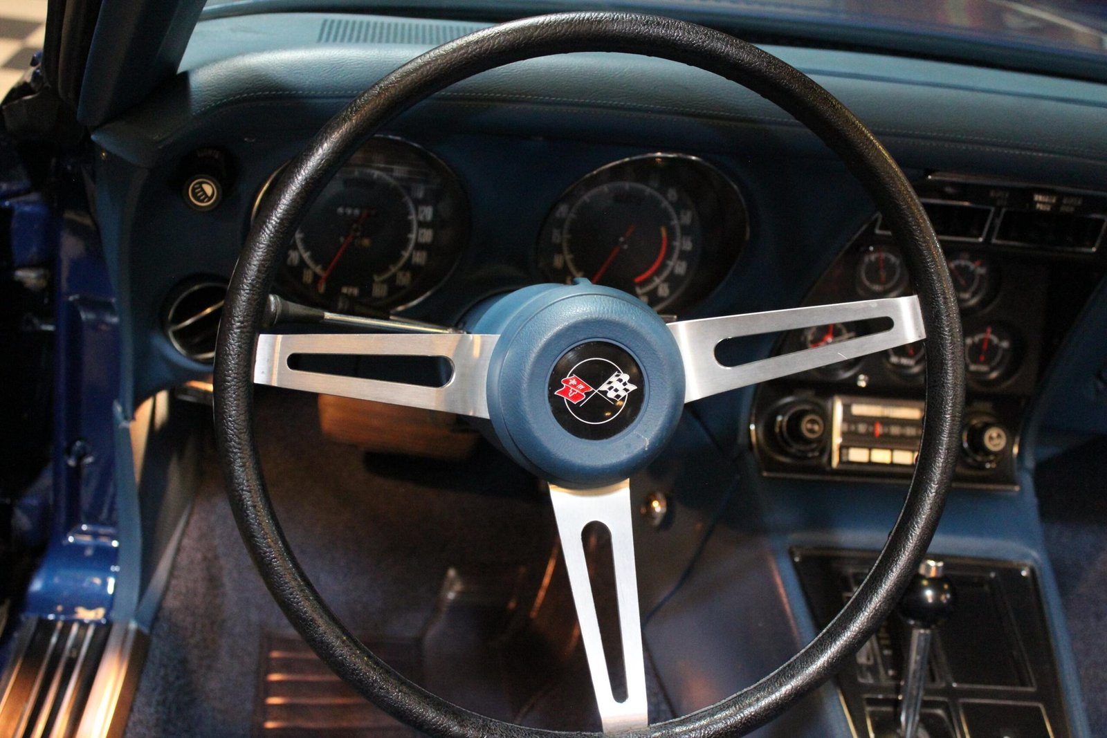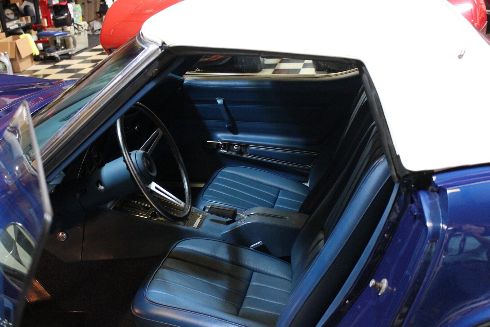 Up for sale is a 1972 Chevrolet Corvette Convertible. This Corvette is dressed in beautiful Blue paint over blue interior and white soft top. This is a matching number L48 350 V8 automatic transmission car that is nicely optioned with power steering, power brakes, AM/FM, tilt- telescoping. This car has very nice shiny paint with new interior, nice driver quality car. This car has a great look with seldom seen color combo that makes it really stand out. This is a great car to let the top down on nice days and just cruise, easy to drive. Ready to enjoy.
