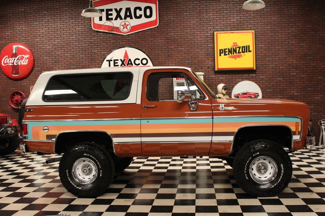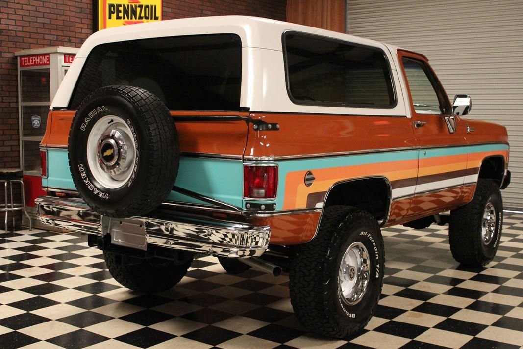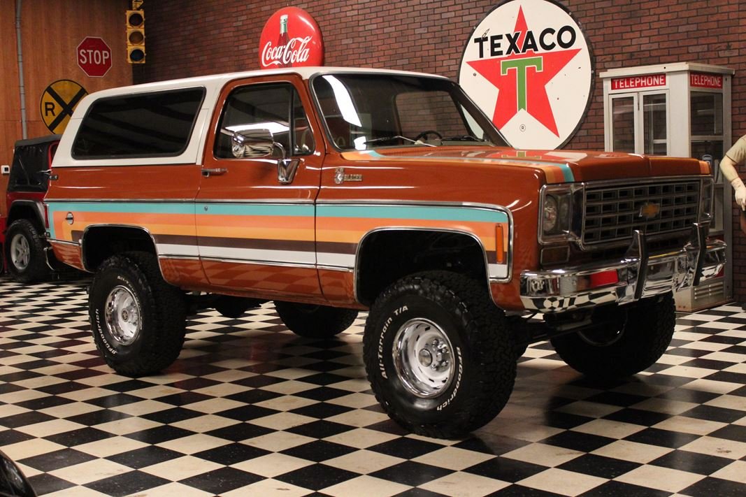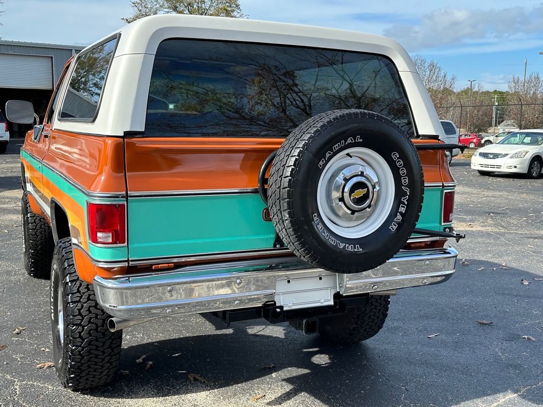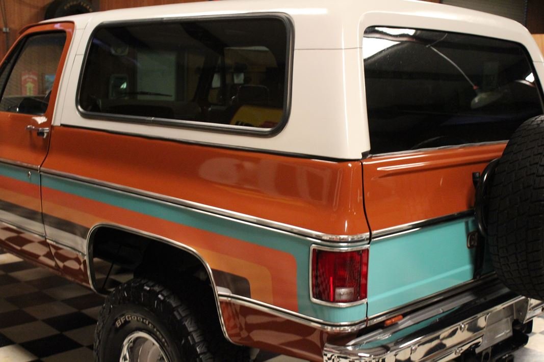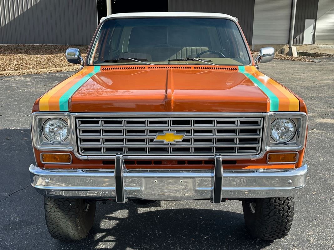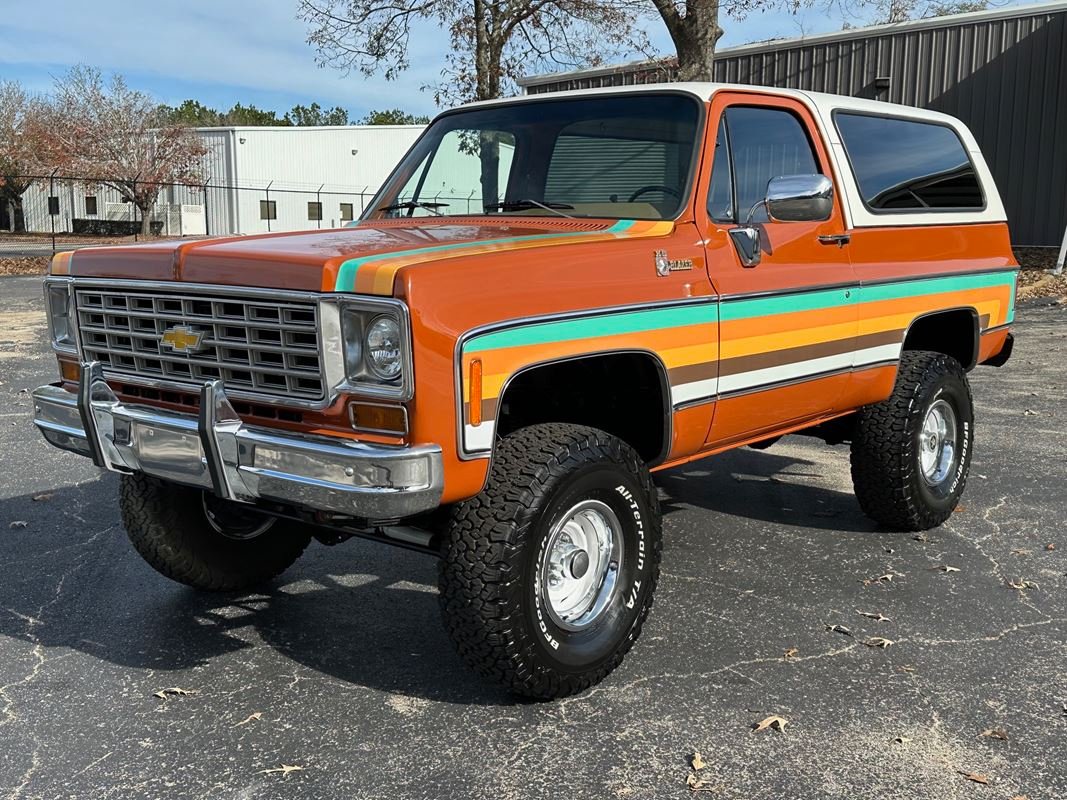 Up for sale is a 1976 Chevrolet K5 Blazer. This stunning K5 Blazer is dressed Grecian Bronze paint with custom original style decals and Saddle interior. This K5 Blazer is nicely optioned with 350 V8 engine, automatic transmission, power steering and power brakes. The motor, transmission and transfer case has been rebuilt on this blazer. When the motor was rebuilt Sniper Holley fuel injection was added to make it a more reliable and easier drive. This Blazer has a 4 inch lift with nice Bfgoodrich tires. This is a very nice K5 Blazer with a unique and stunning look. You will not pass another one like this on the road. Great color combination. This Blazer is a ready to drive and enjoy or take to a local car show and be the center of attention.