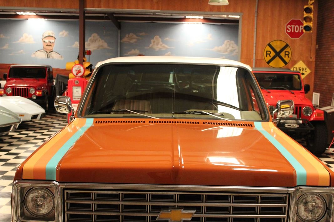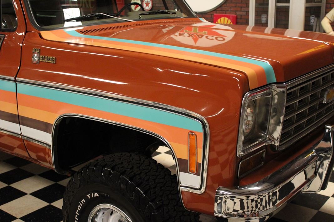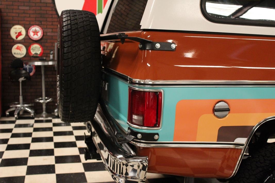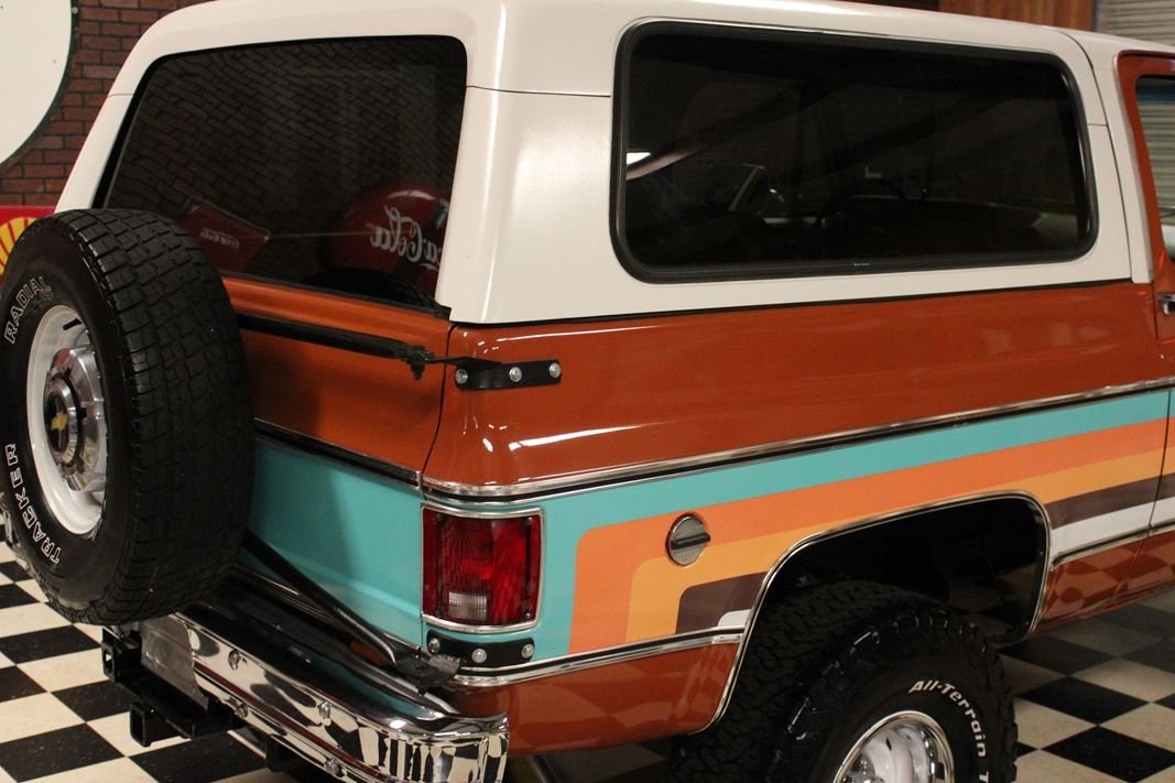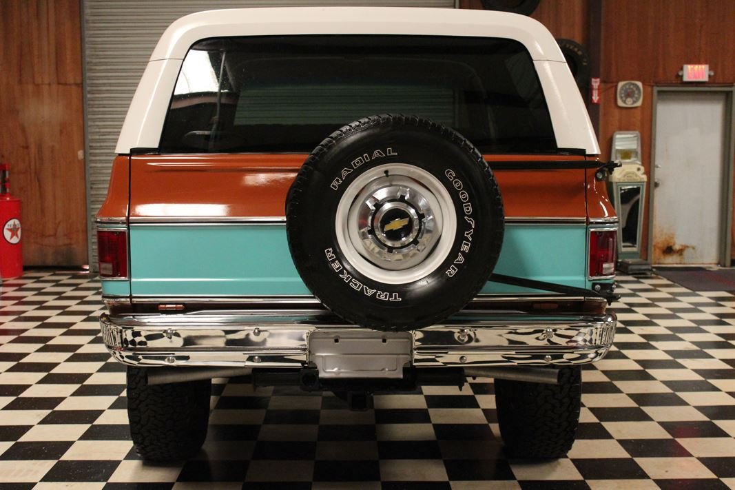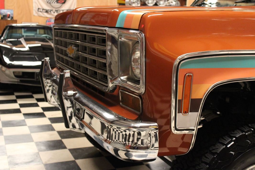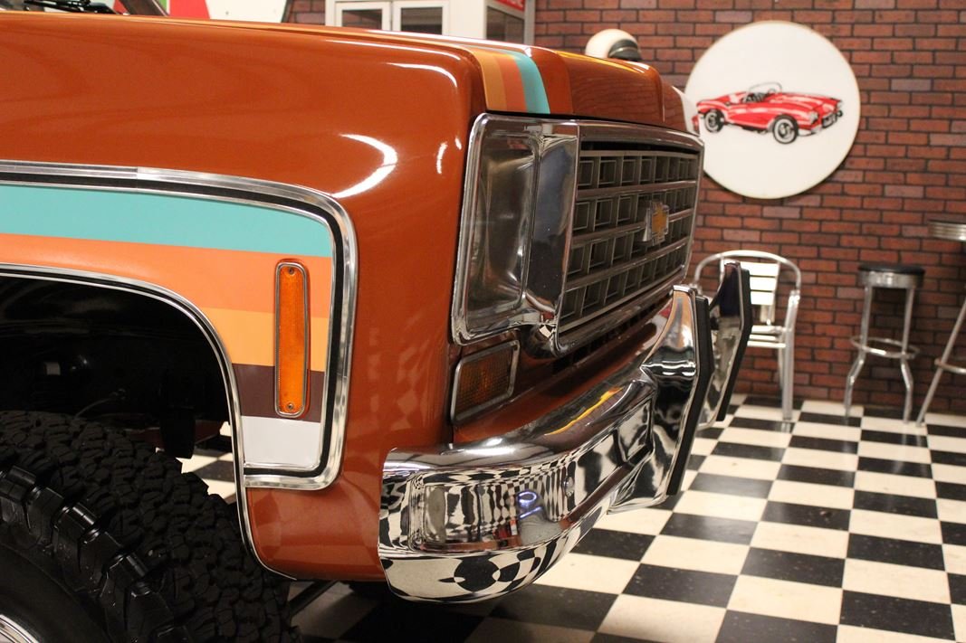 Up for sale is a 1976 Chevrolet K5 Blazer. This stunning K5 Blazer is dressed Grecian Bronze paint with custom original style decals and Saddle interior. This K5 Blazer is nicely optioned with 350 V8 engine, automatic transmission, power steering and power brakes. The motor, transmission and transfer case has been rebuilt on this blazer. When the motor was rebuilt Sniper Holley fuel injection was added to make it a more reliable and easier drive. This Blazer has a 4 inch lift with nice Bfgoodrich tires. This is a very nice K5 Blazer with a unique and stunning look. You will not pass another one like this on the road. Great color combination. This Blazer is a ready to drive and enjoy or take to a local car show and be the center of attention.